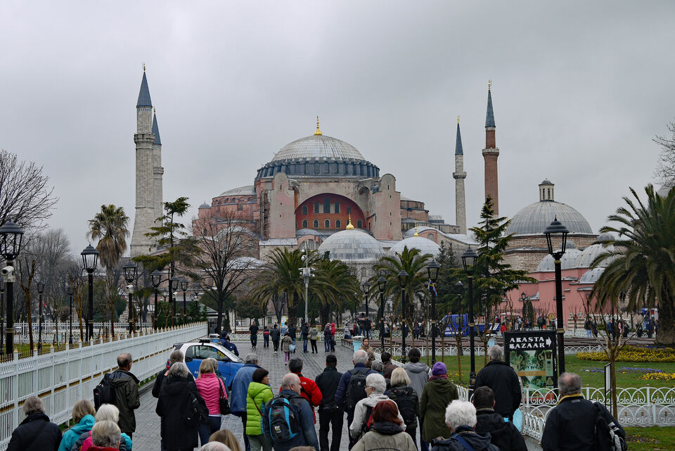 Här är entrén och här står vår guide och berättar om Hagia Sofia och dess historia och följ gärna länken för där ... läs mer..